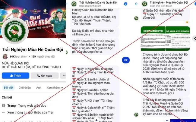 Cứ vào mỗi dịp hè, nhu cầu tìm kiếm các khóa học, hoạt động trải nghiệm cho trẻ tăng cao. Lợi dụng điều này, gần đây trên mạng xã hội xuất hiện nhiều tài khoản Facebook mang tên như “Trại hè quân đội”, “Trải nghiệm mùa hè quân đội”... có dấu hiệu lừa đảo chiếm đoạt tài sản.